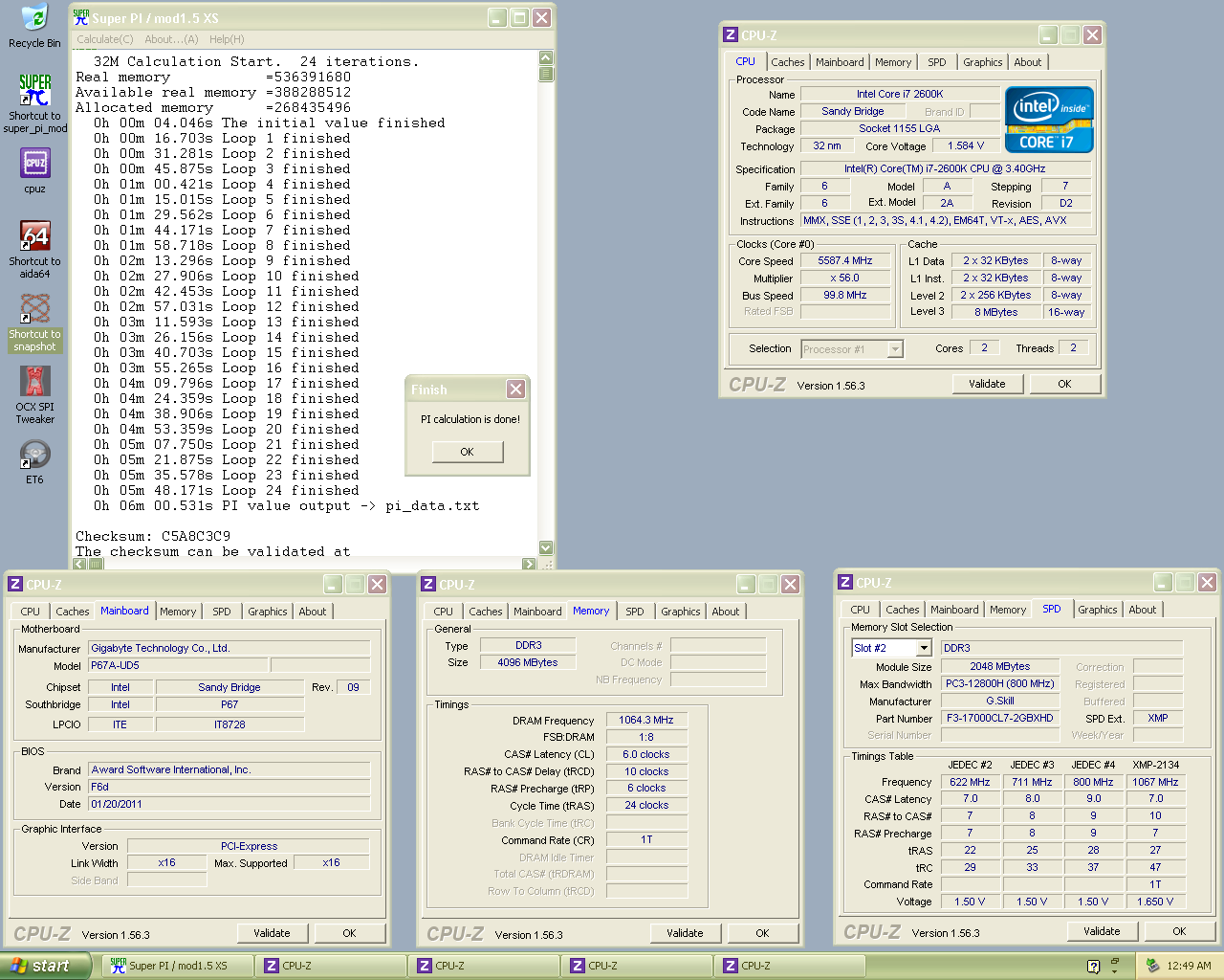 SuperPi 32m - 6min 0sec 531ms - OC Maximus (OCAlliance) - (Intel Core i7 2600K @5587MHz) 22.7 + 15.4 points