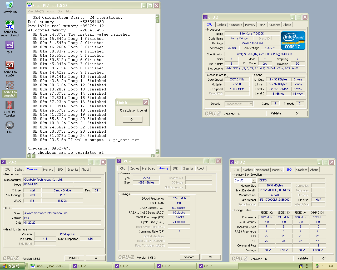 SuperPi 32m - 6min 0sec 531ms - OC Maximus (OCAlliance) - (Intel Core i7 2600K @5587MHz) 22.7 + 15.4 points