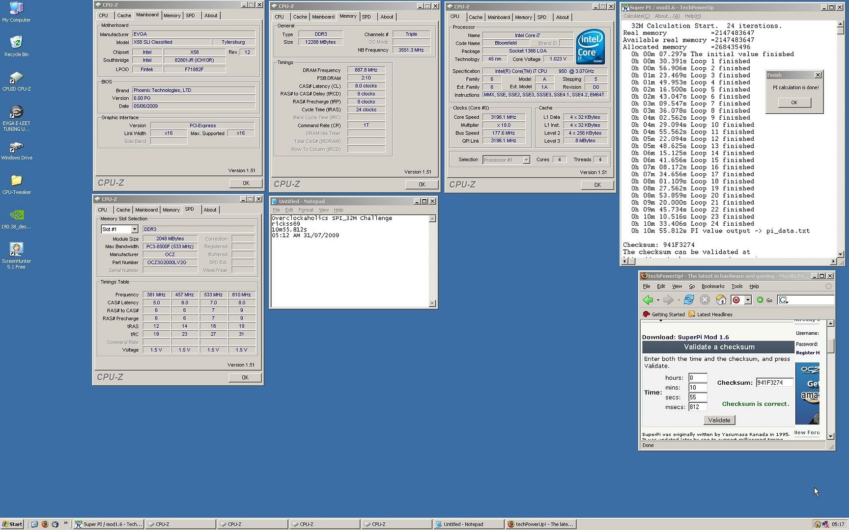 -Screenshot with the following all in one screeny (No internet? Get some): (REVISED!!!!!) Super_PI_Mod_1.6 w/Validator 32M