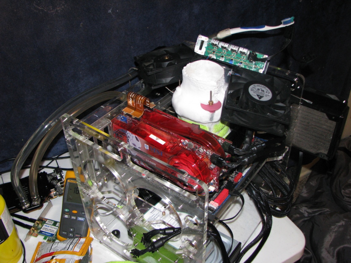 on the stock cooler right now at 4GHz 2730mem :Dizzy: i did notice some pins lil out of place in the center middle area towards the dimm slots but not sure if it was like that before i started on ln2 cuz i did drop it when taking it out after i was done to let it dry out :blush: but ill try out the other and see how it oc and go back to this one |