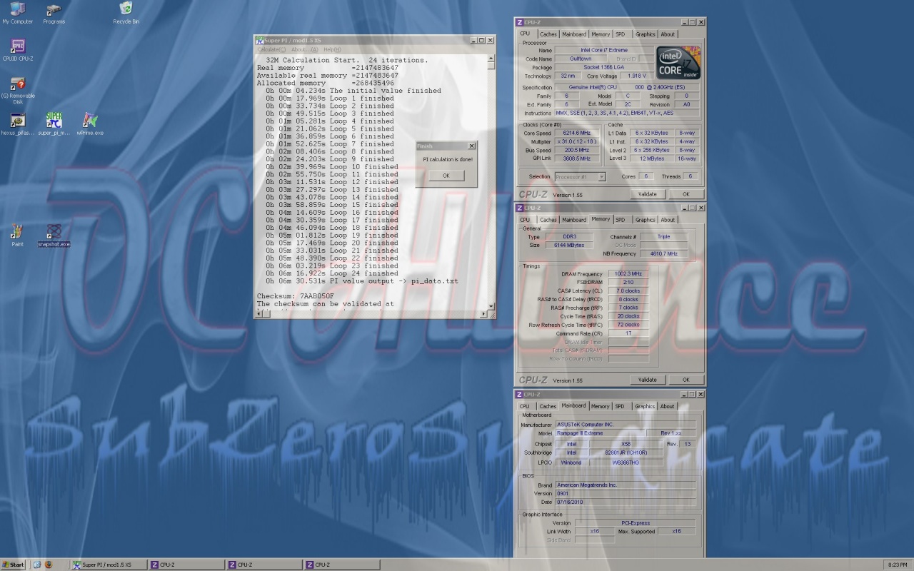 It all started nicely, got my best spi @ 6250 (6.625s), was going to run some 32m when it bluescreened and never posted again. Stuck at cpu initial ... Thaw it out and pray for tomorrow... |