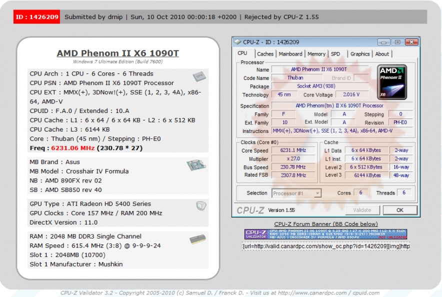 1090t was a complete waste. Had CPU-z validations all the way up to 6.3ghz but for some reason everyone is rejected. :( Something with CPU-z was pooched.