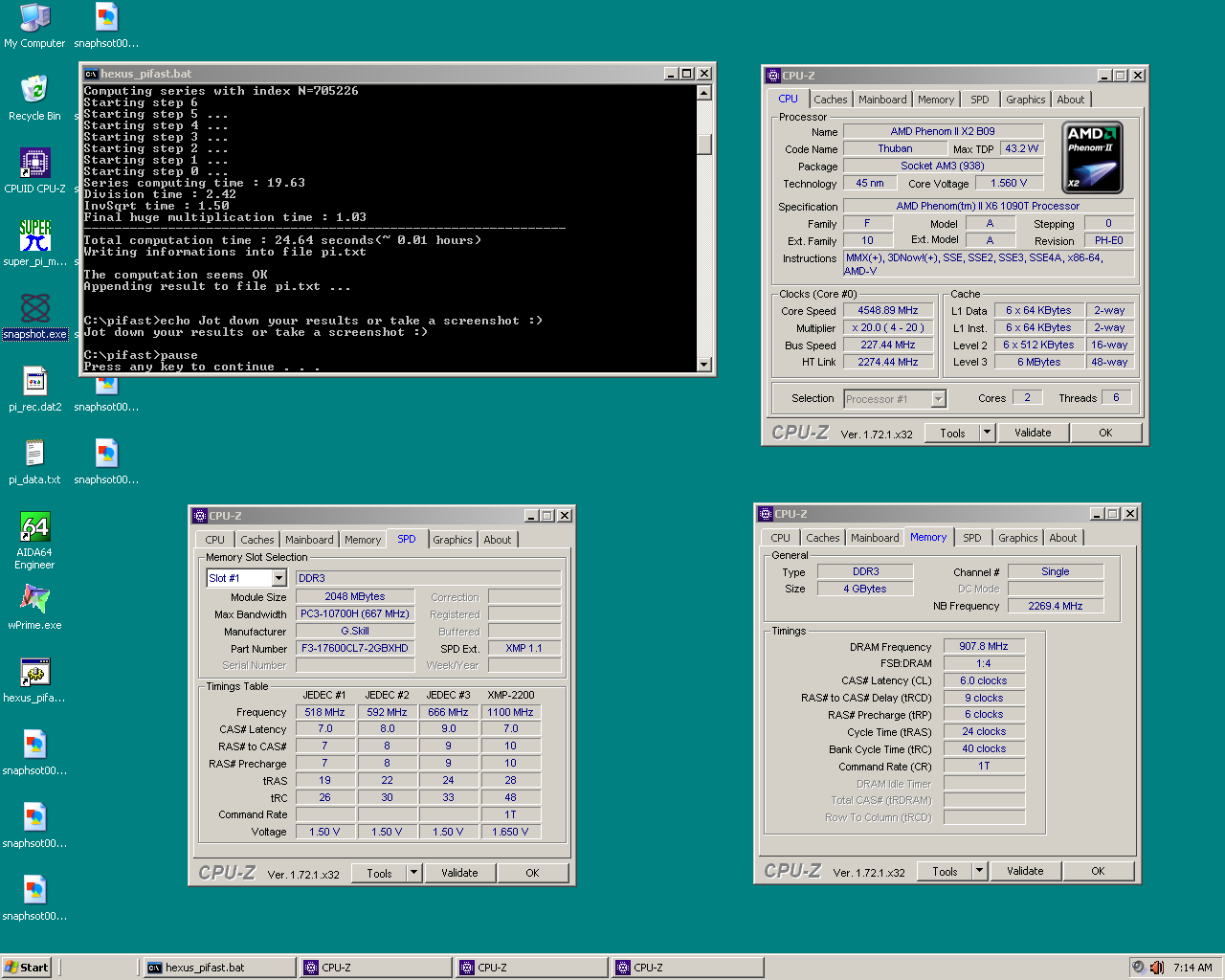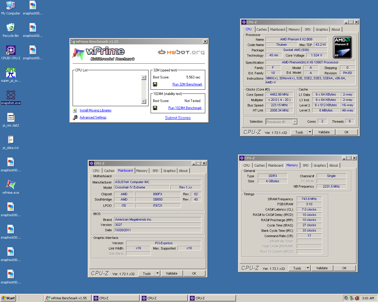 As my wife walked out the door on the way today she says. "Alright Honey, its Father's Day so have fun and do whatever till I get back" Meaning... no chores, lol. So......wPrime Time Attachment 7461 Attachment 7462 Attachment 7463 The 1090T seems to be scaling just fine. Limited myself to 1.5v on CPU still. No need to burn up a perfectly good chip by voltage whoring. A few more 2D benchmark runs and board insulation begins. :good: |
