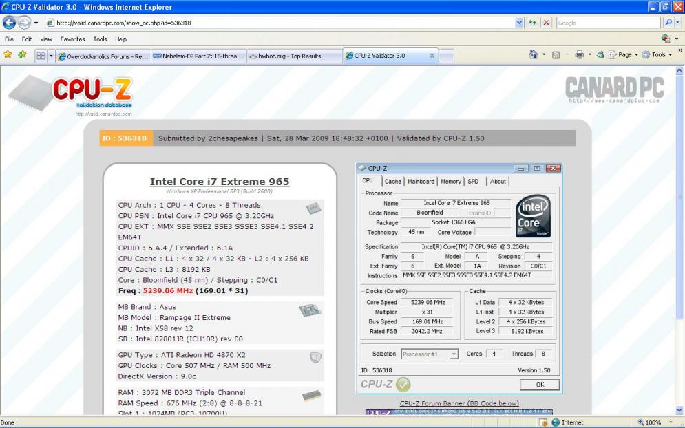 I have some single 4870x2 scores to post also. Highest Memory Mhz Attachment 60 Highest CPU OC Attachment 61 |