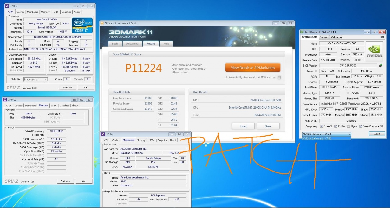 Everybody get out there and bench! Kids are back in school and I have a week off with nothing much to do. :laughing: I'm also excited that I finally figured out why I've had such a craptastic time overclocking GPU's lately. My vaunted Antec 1200W HCP sucks smelly green eggs. I may be a bit dense, but eventually even I figured out that 2 580 Lightnings, a 580 Matrix, and a CUII couldn't ALL have a wall around 1300........ Switched it out for the Corsair 1200 and the un-overclockability magically disappeared. :thumbsup: My first September submission won't knock any socks off, but it's something to start with. http://overclockaholics.com/forums/a...1&d=1315126763 |