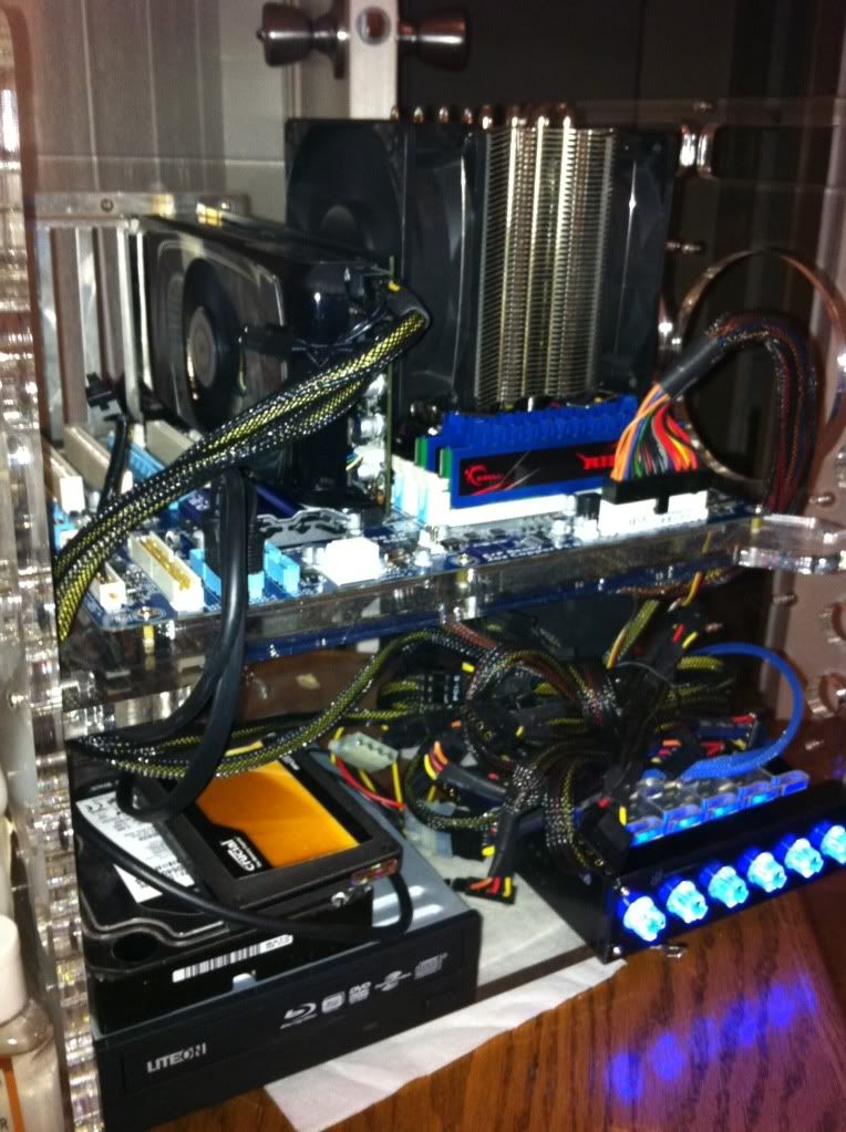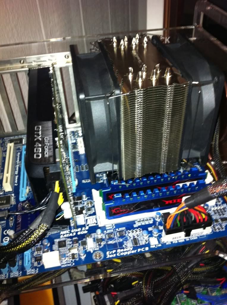 As promised a couple more quickie pics, got the i7 870 in running at 3.84, 160x24, ram at 1600, 7-8-7-27 1.66v, everything is rock solid after a couple hours testing with prime 95 and IBT.