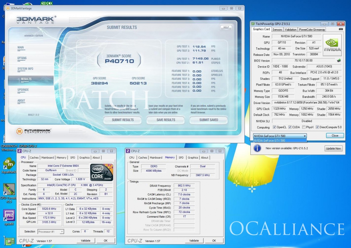 Damn Nice clocks on the GPU, great score....but now you certainly need either a 5.6-5.7Ghz SB CPU or atleast a 6Ghz gulftown